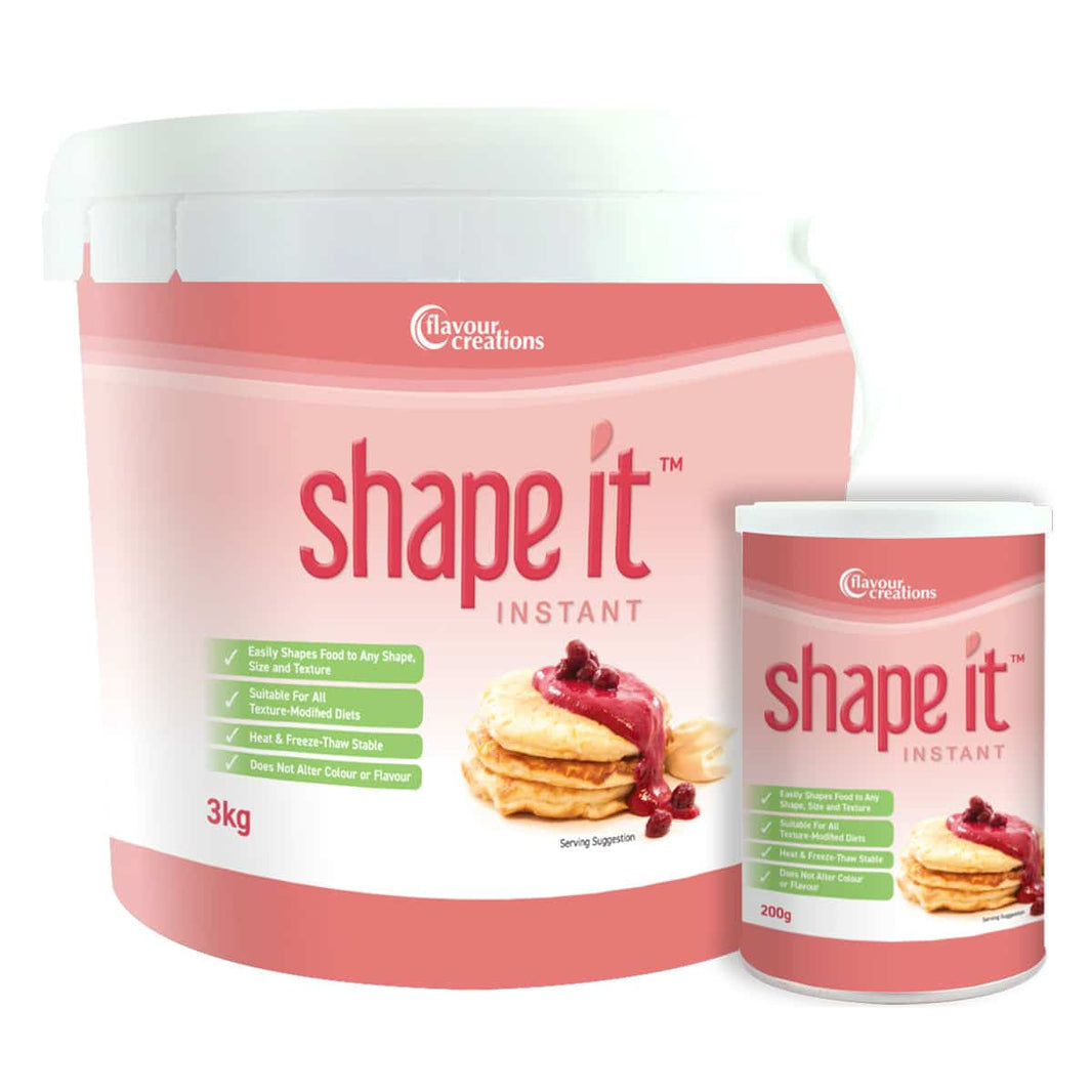Using Shape It Instant Thickener and a range of food moulds, pureed foods can be reshaped into realistic forms such as vegetables, meats, and desserts — making mealtimes both appetising and dignified.