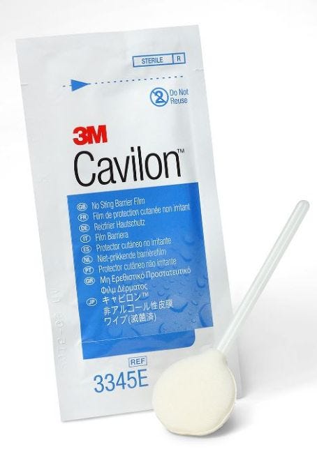 3M™ Cavilon™ No Sting Barrier Film is a completely alcohol-free, stingfree, liquid barrier film that dries quickly to form a breathable coating that helps protect damaged or intact skin from bodily fluids, adhesive trauma, friction and incontinence. Each individual sterile package contains 3.0ml of No Sting Barrier Film saturated onto a foam applicator wand. This product’s proprietary formulation contains a unique Terpolymer for skin protection and a plasticizer that forms a flexible, protective coating. A unique solvent system provides fast-drying and leaves a non-sticky, protective film that won’t interfere with other materials while enhancing patient comfort. The film is transparent, allowing continuous visualization and monitoring of skin at risk for breakdown. The unique formulation in the Cavalon™ No Sting Barrier Film family provides long-lasting protection. It does not transfer to or reduce absorbency of diapers or continence briefs, possibly minimizing the need to change failed briefs, linens and associated products.