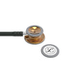 As with the Cardiology III, full adult and paediatric auscultation is available through its dual head chestpiece simply by rotating the central spline to alternate between the two sides. The more compact one piece diaphragm and rim assemblies have further increased acoustic sensitivity. The binaurals have been redesigned with larger diameter ear tubes and a thicker single lumen binaural to transfer sound more effectively. The selector spline is now recessed to allow a flush fit with the binaural tube and now features a visual indicator for easy identification of the operational diaphragm.