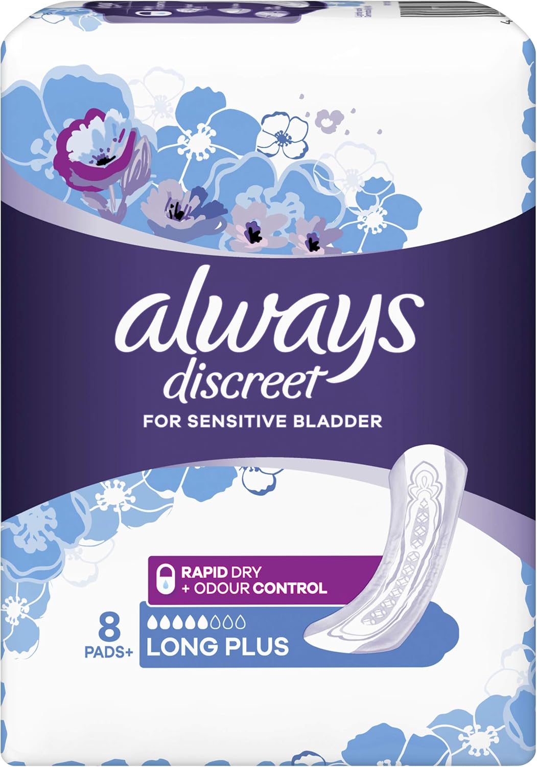 Always Discreet Incontinence Pads, Long Plus, 8/PackSUA_B0873M8G1S_WH