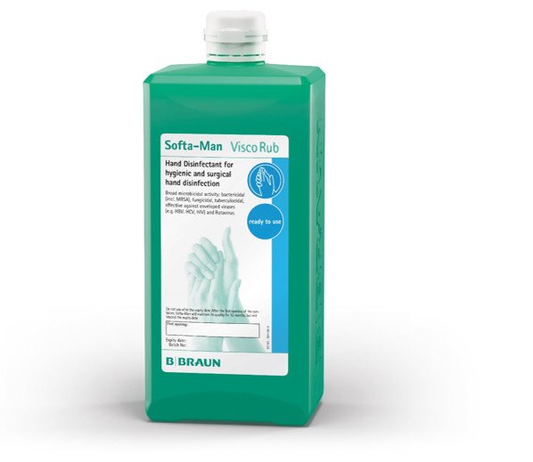Alcohol based handrub for General and Surgical Hand Disinfectant for sensitive skin.57.5% Ethanol, 22% N-Propanol , includes bisabolol to protect sensitive skin. The Softaman range is enriched with high quality skin emillients (dexpanthenol, allantoin, and/or bisabolo) to protect hands and skin during repeated and long term use. Softaman Viscorub is gel-like and is both perfume and colour free.