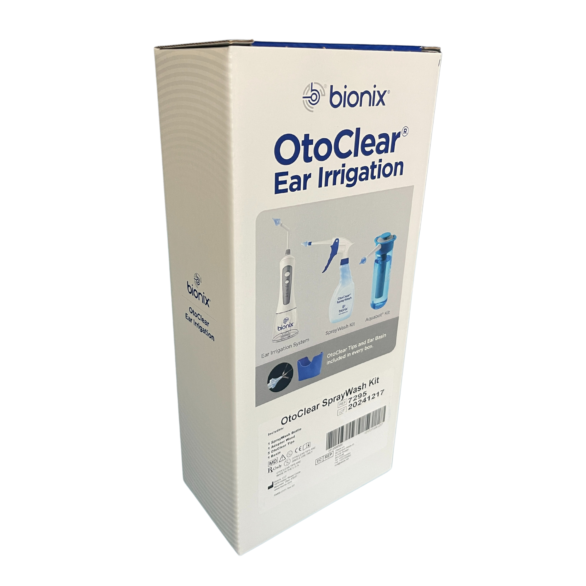 The OtoClear Spray Wash Kit is an extension of the OtoClear Ear Irrigation product line. The addition of the Spray Wash Kit advances the OtoClear line and provides an additional option of safe and effective cerumen removal using the OtoClear irrigation tip.