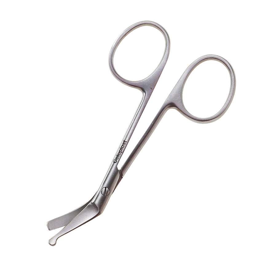 For an optimum fit around your stoma. Ostomy scissors with curved blades, designed to facilitate the circular cuts made when cutting your ostomy appliance to your stoma size, for a snug fit.