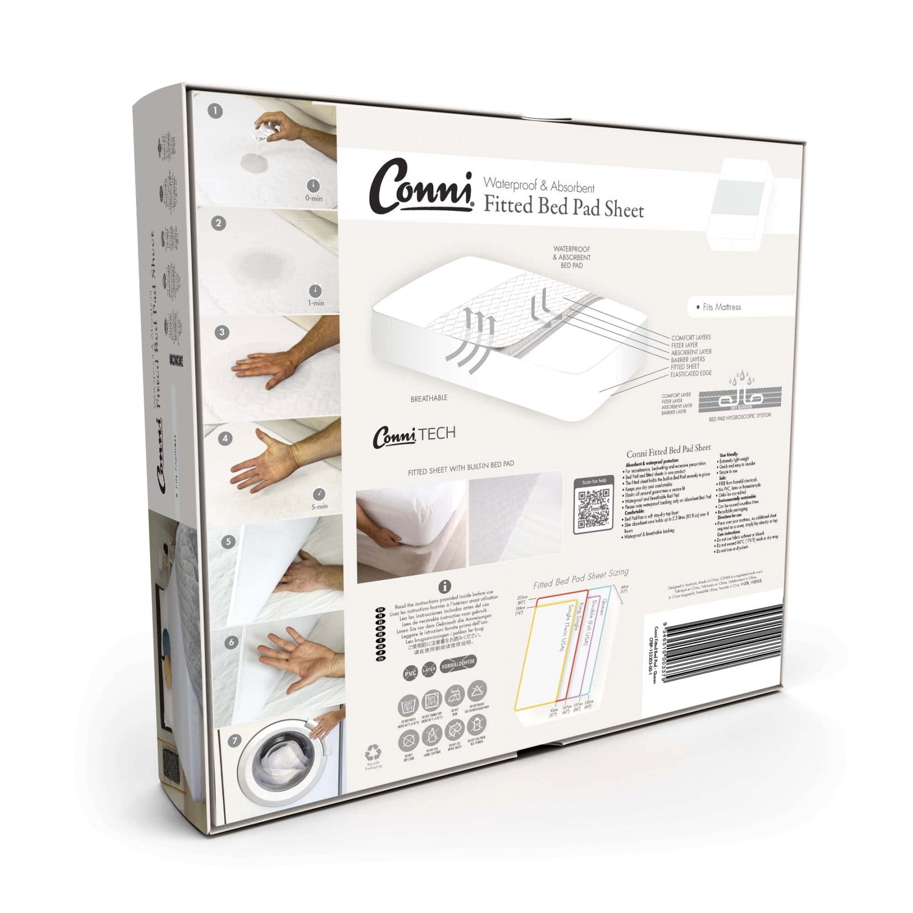 The all-in-one Conni Bed Pad and Fitted Sheet. The Conni Fitted Bed Pad Sheet holds the built-in Bed Pad securely in place.