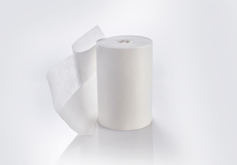 Nonwoven: white, 100 % polyester, skin-friendly polyacrylate adhesive (free of colophony and colophony derivatives)