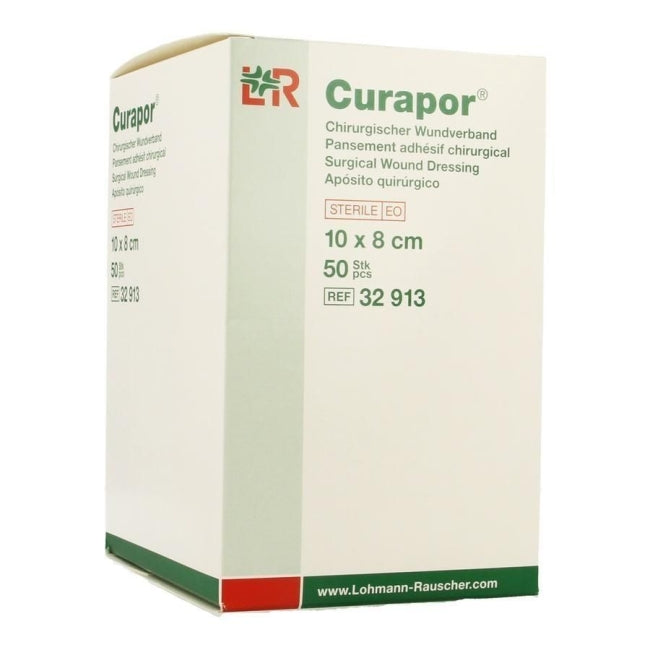Curapor Surgical Dressing is a sterile, adhesive wound dressing designed for post-operative wound care and minor injuries. It typically features a non-adherent absorbent pad at the center with a hypoallergenic adhesive border, providing a secure yet gentle attachment to the skin.