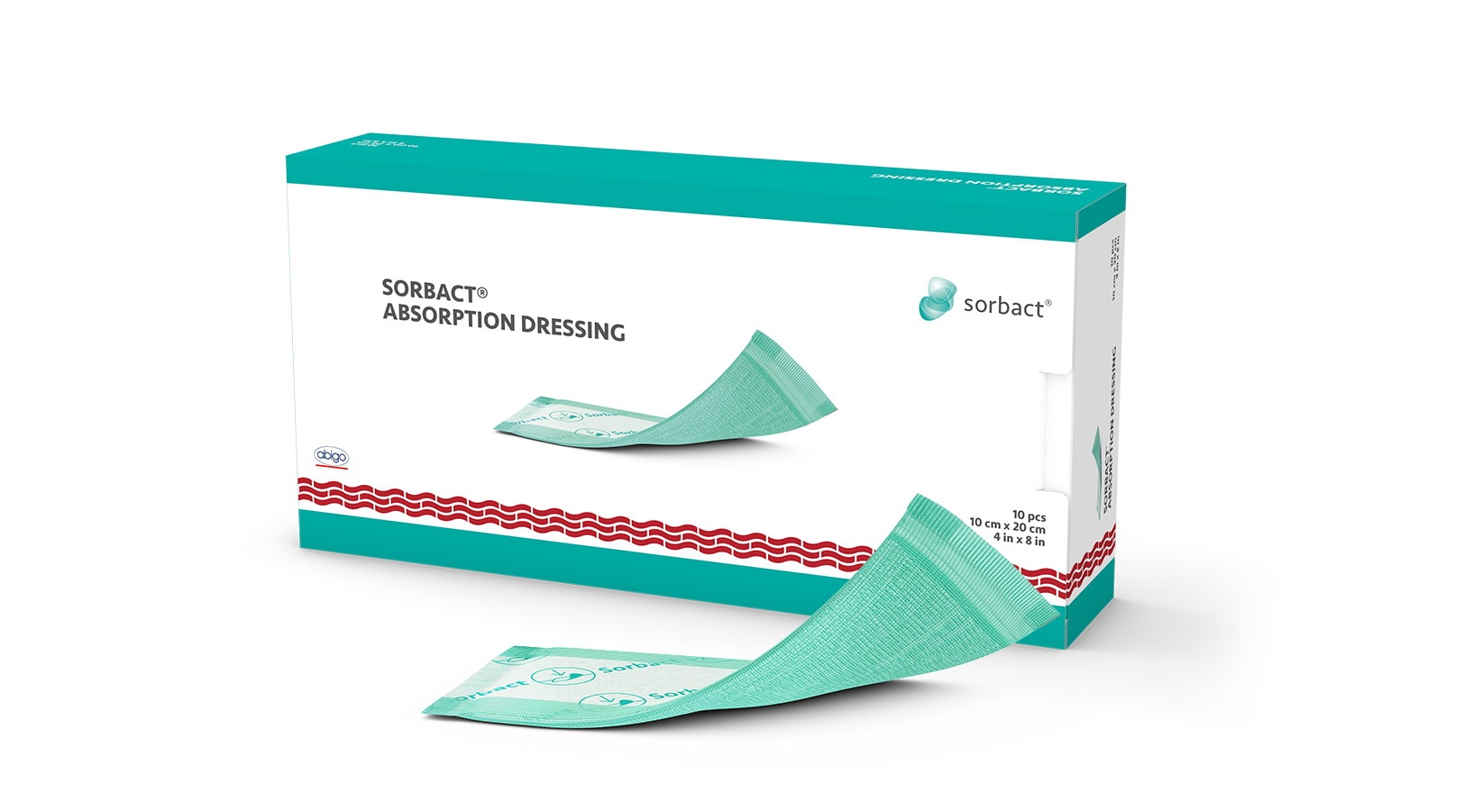 Sorbact® Absorption Dressing is a sterile wound dressing that binds bacteria and fungi. It consists of a green Sorbact® wound contact surface, combined with an absorbing core and a white backing film. Sorbact® Absorption Dressing absorbs and retains wound fluid, thereby reducing the risk of maceration, and creates a moist wound environment.