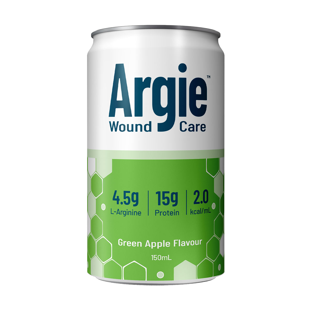 Argie is a high-protein, energy-dense supplement with L-arginine, vitamin C, and zinc, designed for the nutritional management of people with wounds, including pressure ulcers and slow-healing wounds. The crisp, refreshing Argie Green Apple Flavour and Orange Flavour provides key nutrients to support wound healing, skin integrity, and muscle health – supporting recovery from the inside out.
