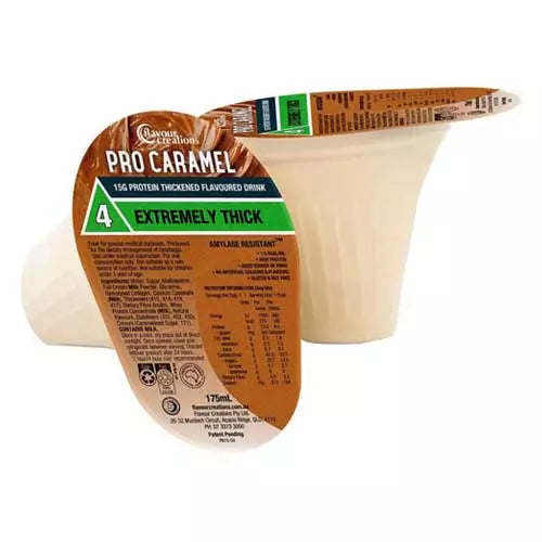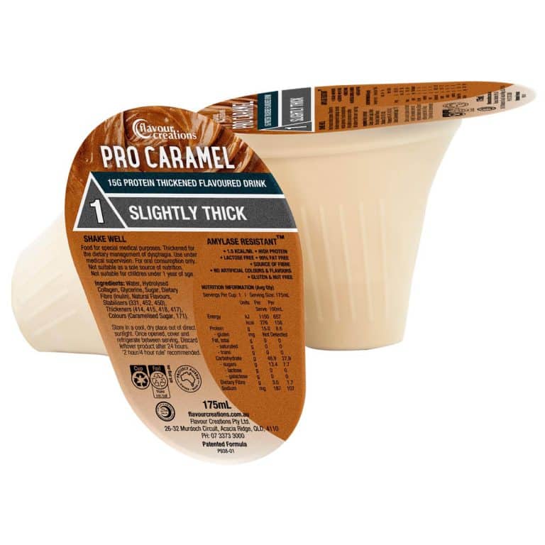 Creamy and sweet, ready-to-drink Pro Caramel is a delicious source of hydration, packed with 15g of protein. High in energy and fibre, Pro Caramel is thickened for those with swallowing difficulties (dysphagia), and is packed in our award-winning patented Dysphagia Cup.
