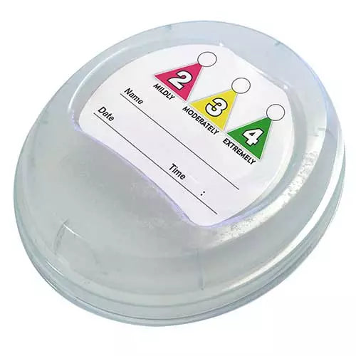 The IDDSI Level Stickers are visually distinct, colour-coded stickers available in IDDSI Levels 2, 3 and 4 (Mildly Thick, Moderately Thick and Extremely Thick). When placing stickers onto storage containers, ensure the stickers are placed in easily visible positions, such as the container top or lid.