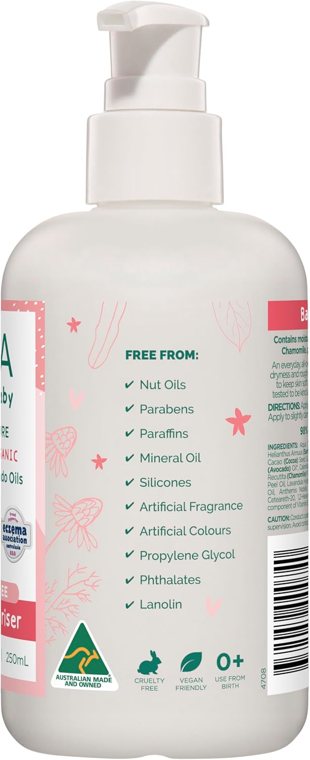 Australian-made Baby Moisturiser is free from harmful ingredients such as mineral oil, sorbolene and paraben preservatives.