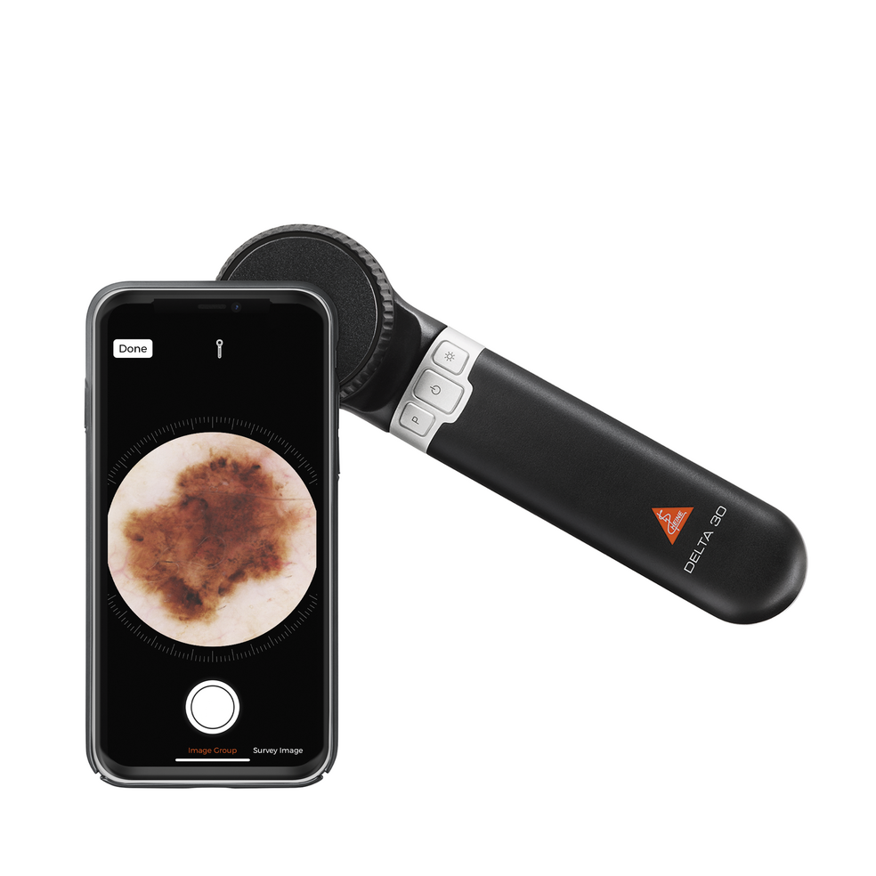 The HEINE DELTA 30 Dermatoscope is a high-end dermatological instrument known for its superior image quality and ergonomic design. It features a large 30mm field of view, 10x magnification, and an achromatic optical system for sharp. It offers both polarized and non-polarized illumination, with adjustable brightness levels and an autoclavable contact plate for hygiene. Digital documentation is facilitated through the HEINE DERM app and HEINE Cube System.