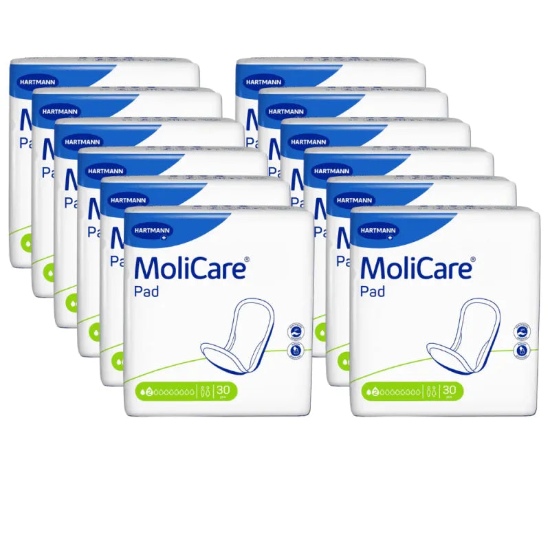 Hartmann Molicare Pad is a reliable unisex pad range designed for light to moderate bladder weakness and for providing secure protection while maintaining healthy skin. Molicare is available in three versions on the basis of absorbency; 2 Drops(321ml) - Green, 3 Drops (481ml) - Turquoise and 4 Drops (865ml) - Purple.