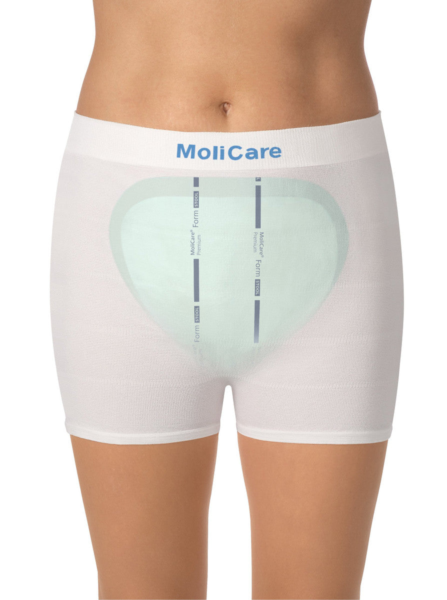 MoliCare Premium Form STOOL is a large anatomical pad for faecal incontinence.