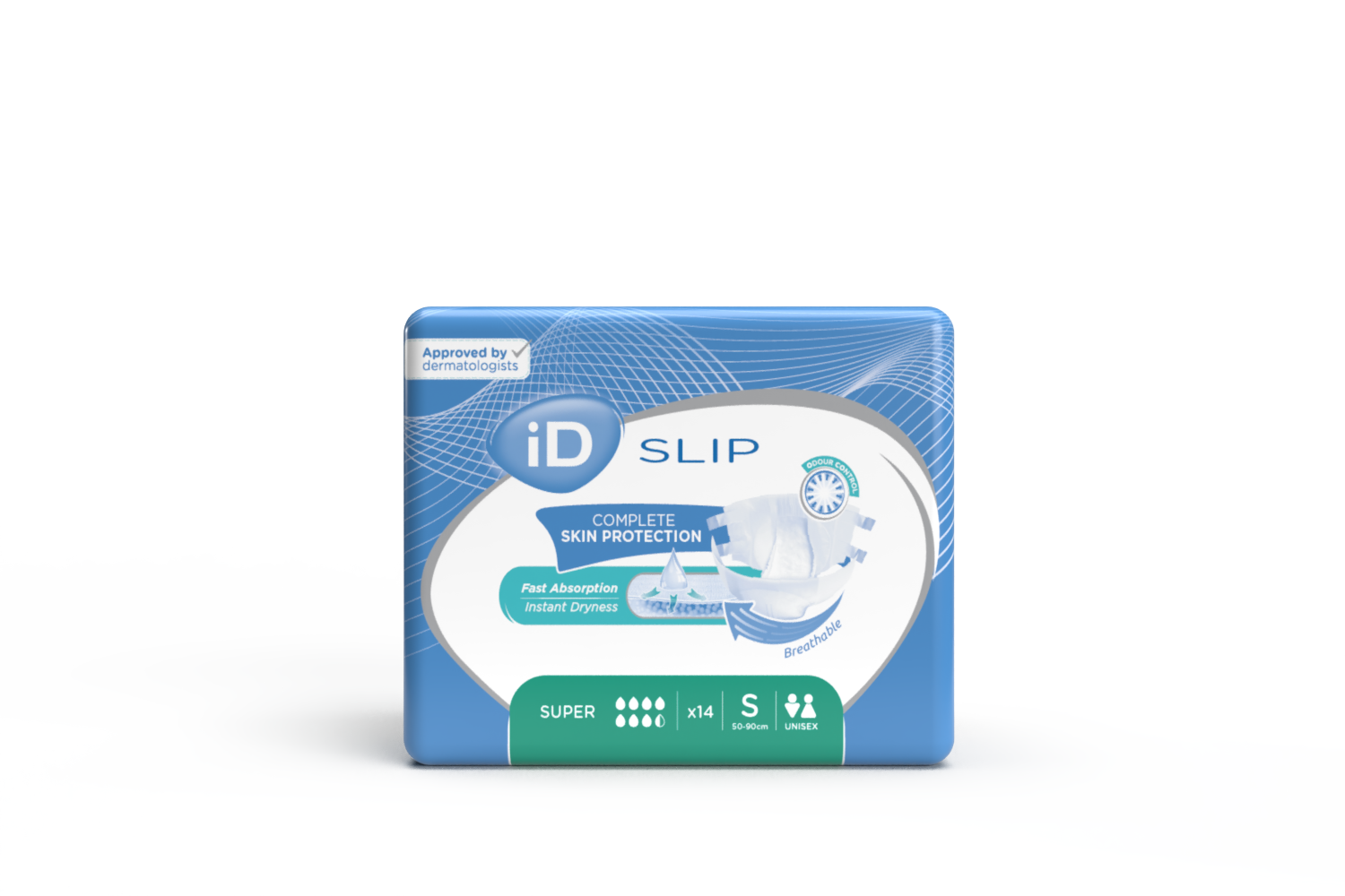 iD Slip Super is an all-in-one incontinence brief designed to deliver maximum performance and complete skin protection. With fast absorption and instant dryness, it keeps users dry and comfortable, while the 100% breathable material allows skin to breathe. The improved topsheet contains natural ingredients for added skin comfort, and the entire range features effective odour control technology and wetness indicators to signal when a change is required. All iD Slip products are dermatologically tested and approved.