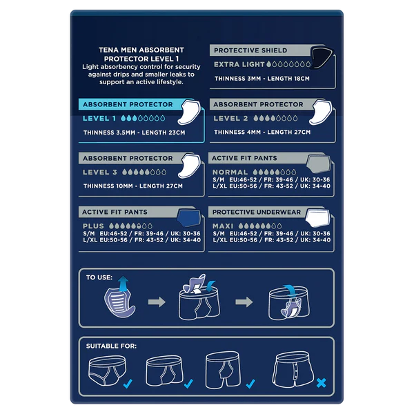 TENA MEN Active Fit Absorbent Protector (Level1 / Level2 / Level3)SUI_750658_1