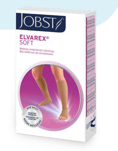 The JOBST® Elvarex range is a medical compression garment that provides effective management of light to moderate oedema, where firm support is needed. The uniquely knitted two layer construction offers a skin protecting softness, accompanied with excellent breathability to suit patients with dry, sensitive or fragile skin. The Elvarex range allows patients to live life in comfort, and convenience, as the knitted construction of the textured yarn garments provide easy donning and doffing. Available in 20mmHg and 30mmHg. Latex Free.