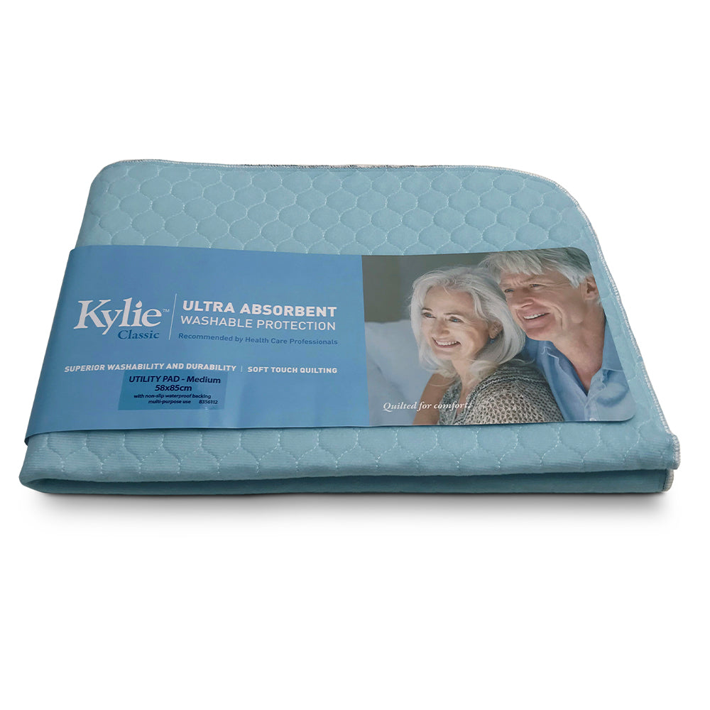 Kylie Utility Pad washable protector is known for quality and durability. Suitable for all levels of incontinence the Kylie Utility Pad is easy to maintain, soft, latex free and dermatologically tested. The non pilling upper layer is smooth and increases the longevity of the bed wetting mat. Kylie Utility Pad has advanced technology with a 5 layer system that ensures the user stays dry and comfortable. Use on couches/sofa, as a dog mattress, or in your car.