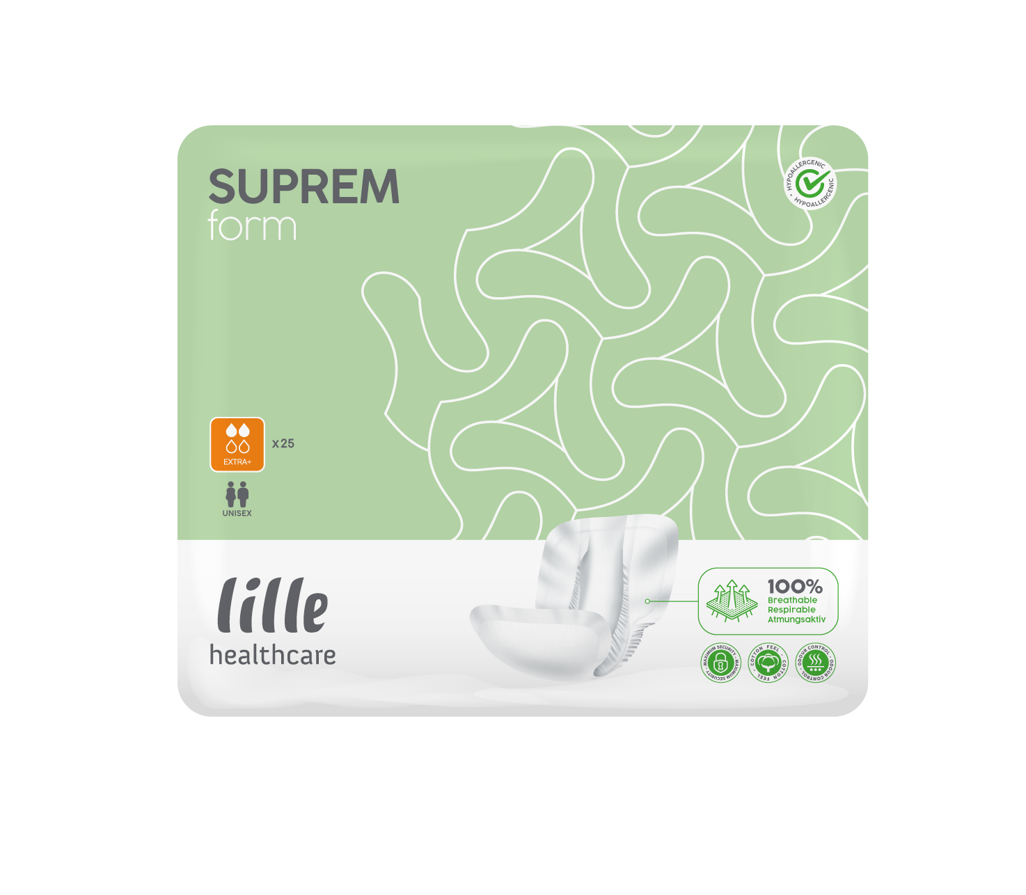 The Suprem Form shaped incontinence pad is ideal for managing moderate to heavy urinary incontinence. These products provide high levels of absorption and Anti-Leakage protection ensuring that you stay dry. 100% breathable material helps maintain skin integrity and is latex free.