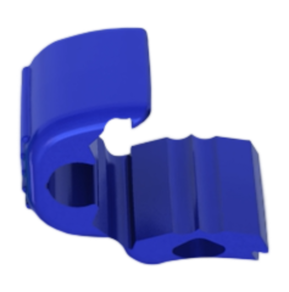 The nasal bridle system has several distinct pieces; a blue retrieval probe, a catheter with removable safety stylet and blue bridle tubing, a pre-attached clip, a removal tool and a lubricant packet. Most of these components serve to thread the bridle into place within the nasopharynx. Once properly inserted, only the soft bridle tubing and device clip remain. The other pieces are discarded.
