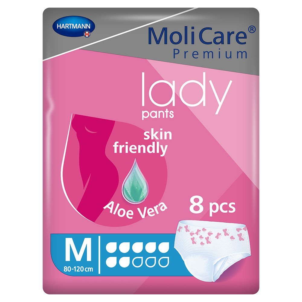 MoliCare® Premium lady pants for light to moderate incontinence are designed to provide a discreet perfect fit to the female anatomy ensuring comfort and security while maintaining healthy skin. It contains a skin friendly soft topsheet Aloe Vera for softness and comfort. And it is available in small packs suitable for travel!