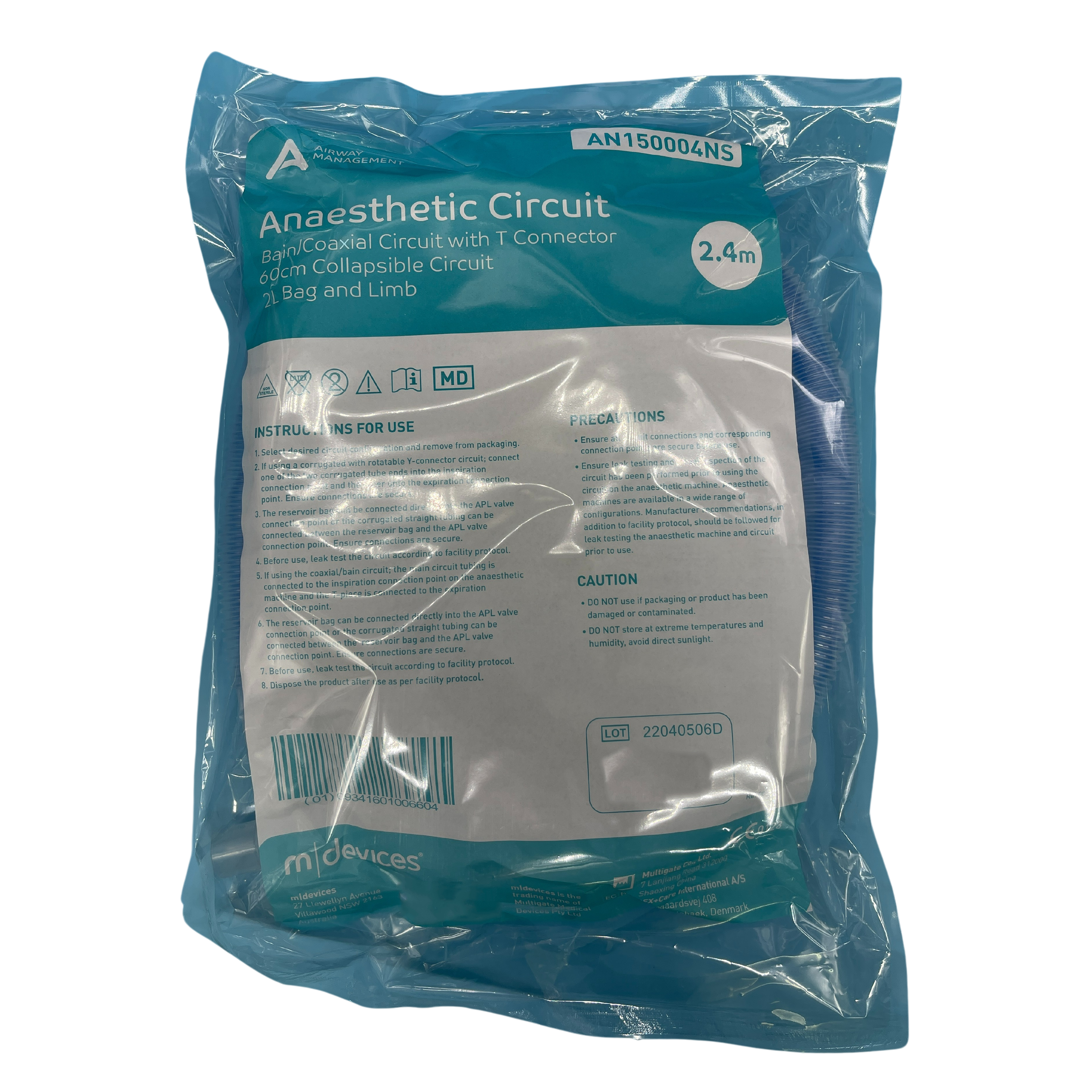 m|devices Anaesthetic Circuits are available in a range of different configurations to meet clinical practice needs. Collapsible circuits are available as either corrugated with rotatable Y-connector or as a bain/coaxial circuit with a T-connector and a 2L bag. A paediatric version is available with a Y-connector and a 1L bag, 1.8m, 2.4m, or 3m length circuit tubing.