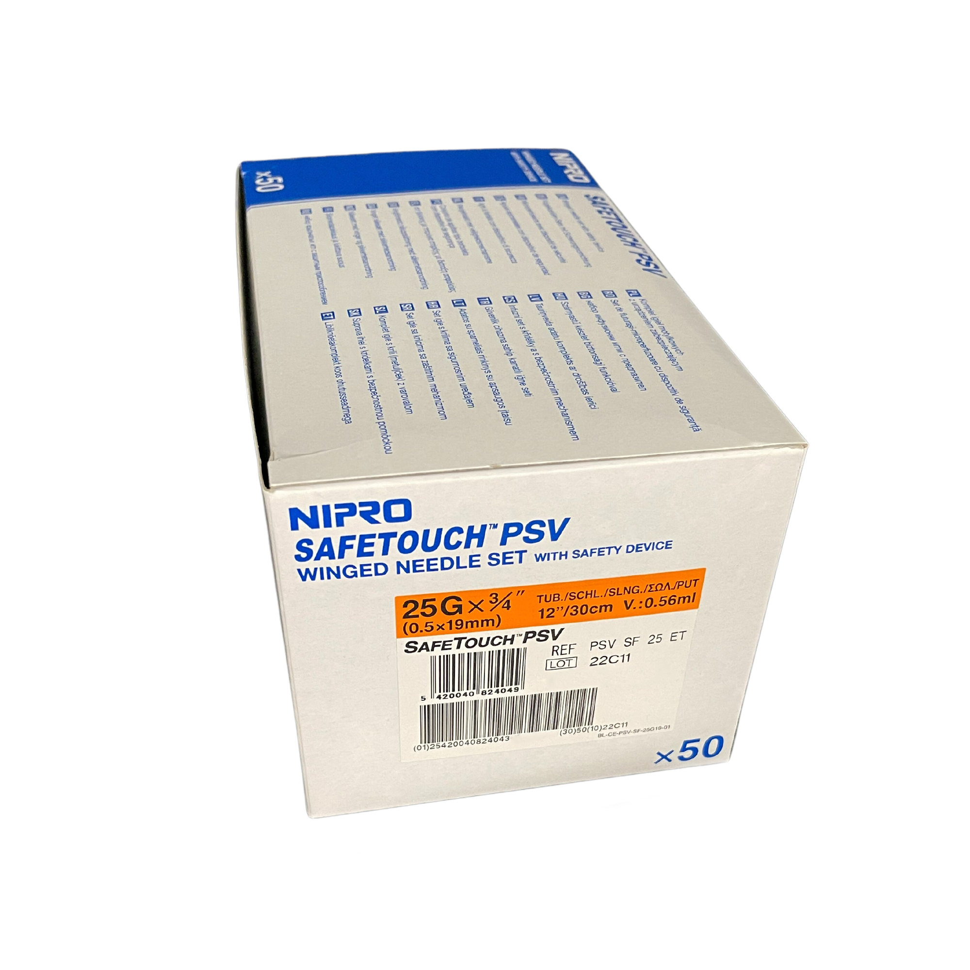 Nipro’s Safetouch winged needle sets (PSV) combine high quality needle performance with an easy-to-activate safety device.