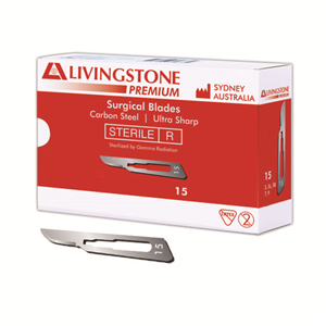 LIV Premium Surgical Scalpel Blades are designed for the dissection of tissues, incisions of skin and for use during a variety of surgical procedures. These surgical scalpel blades are made from top grade European carbon steel and German, Swedish and Swiss stainless steel. They are sterile, available in a broad range of sizes and boxes of 100.