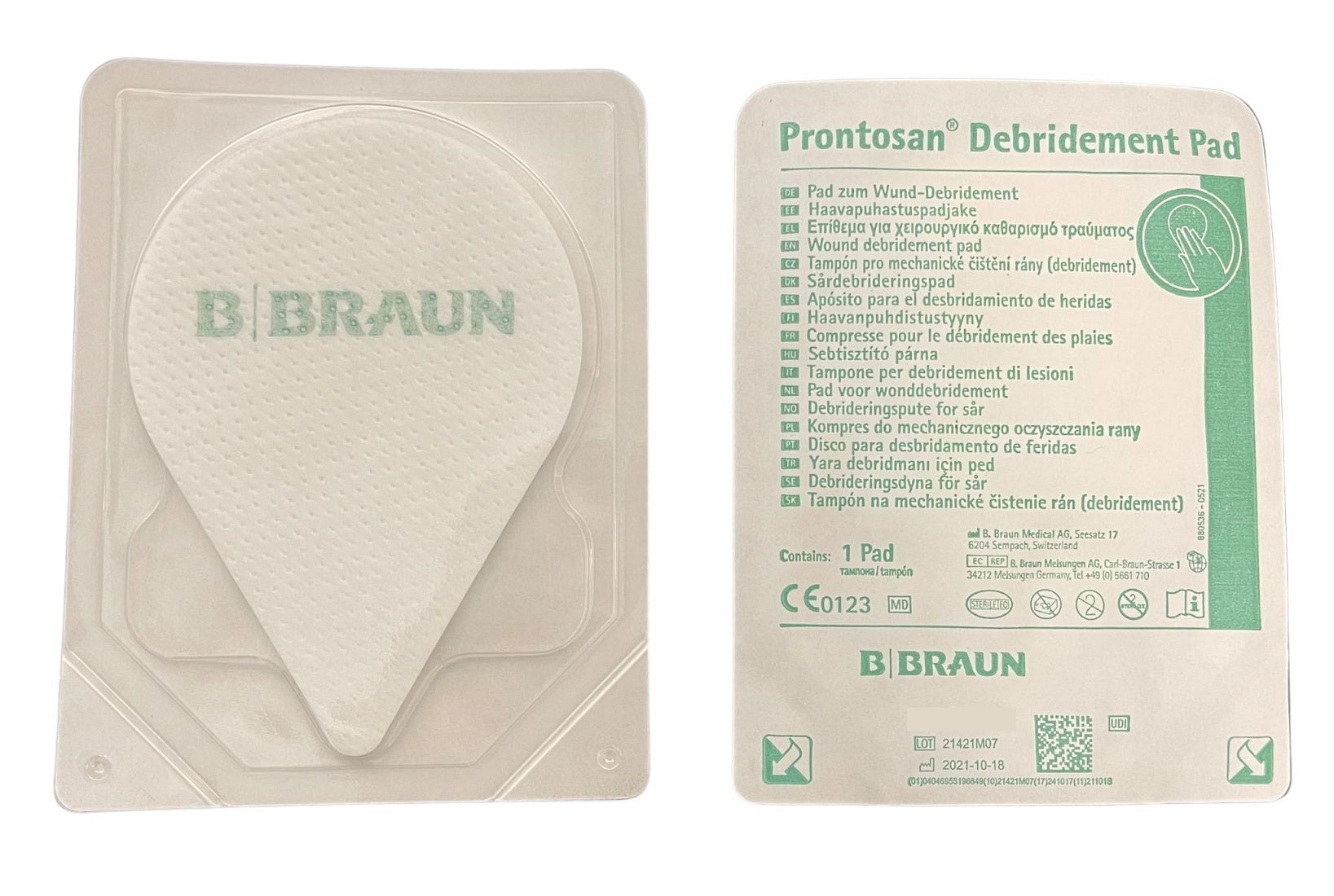 The Prontosan® Debridement Pad is intended to support the soft mechanical debridement of chronic wounds in combination with Prontosan® Wound Irrigation Solution.