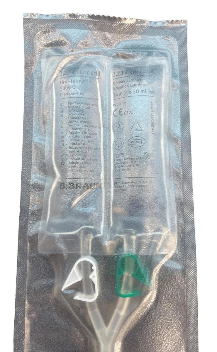 In conclusion, the B. Braun Uro-Tainer Twin Suby G 2 X 30Ml Citric Acid 3.23% Twin Pack 9746609 is a top-quality product that offers convenience and peace of mind to both healthcare providers and patients. Its carefully designed formulation and user-friendly packaging make it an essential tool for urological care.