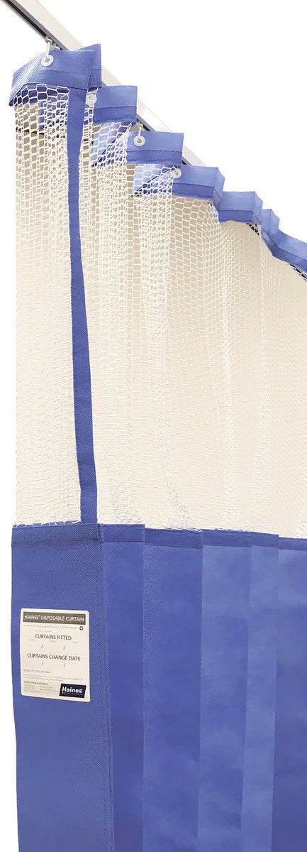 Haines® Antimicrobial Medical Curtains with 50cm mesh at the top of the curtain for ceiling mounted curtains if compliance with fire regulations is an issue.
