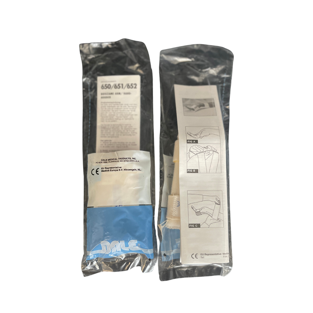 The Dale bendable arm board is a simple cost effective, tapeless, means to position and secure the wrist to prevent unwanted movement when using arterial and peripheral (intravenous) lines. The arm board is covered in a soft comfortable material and is fastened to the arm with adjustable hook and loop straps. The arm board can be custom shaped to any position.