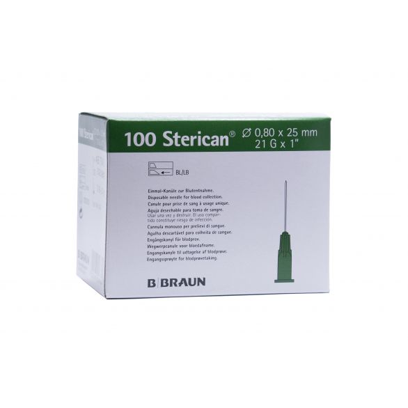 B. Braun Sterican Single Use Blood Sampling Needles Long Bevel 21G (0.8 x 25 mm) - Green, Box of 100 (4657543)BB_4657543_100_WH1