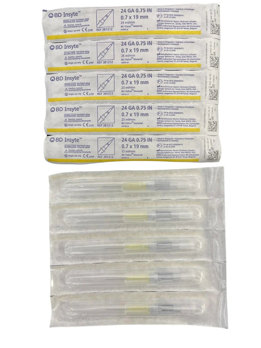 | 381212 | BD Insyte IV Catheter | 24G (Yellow) | 0.75 Inch (19mm) | Non Winged |