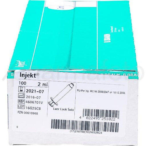 B. Braun Injekt Disposable Syringes 2-Parts, Luer-Lock, Box of 100 - All SizesBB_4606701V_100