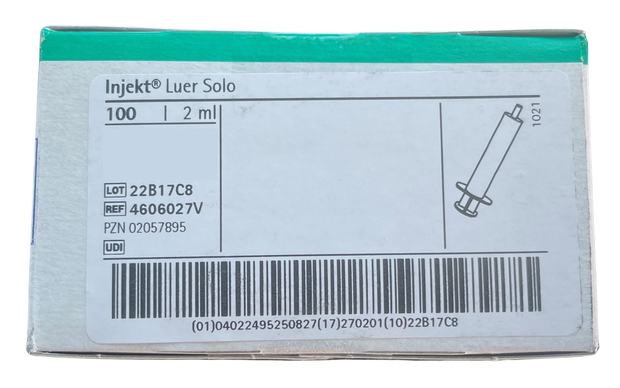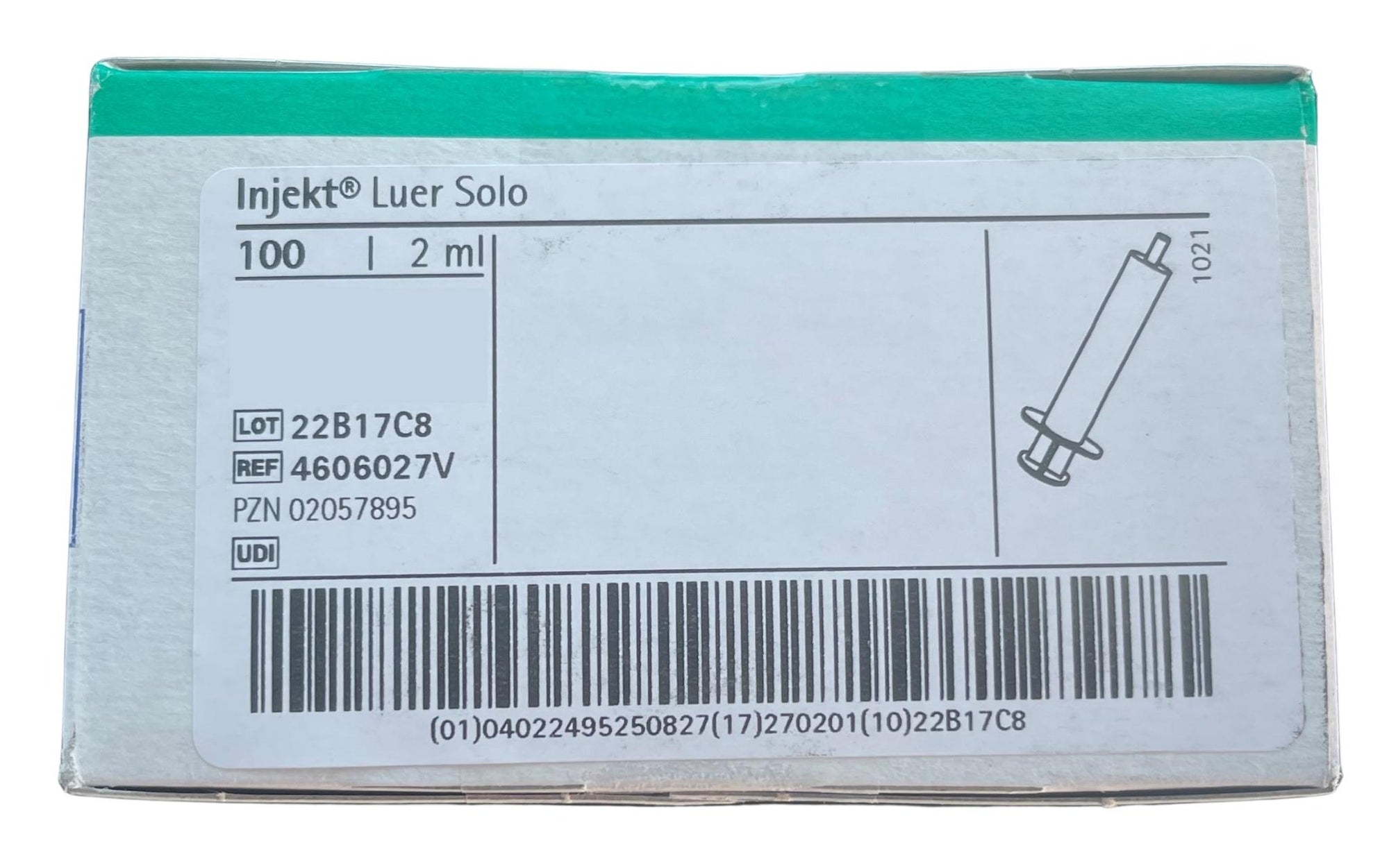 B. Braun Injekt Luer Solo 2-Piece Single-Use Syringe Green plunger, Box of 100 - All SizesBB_4606027V_100