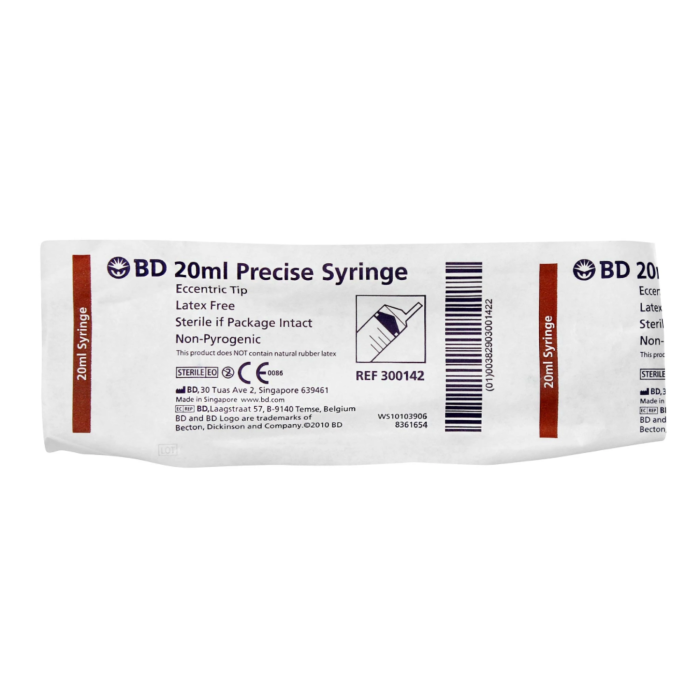 The luer slip eccentric tip reduces dead space when using large capacity syringe. This syringe is sterile, latex free and individually packaged.