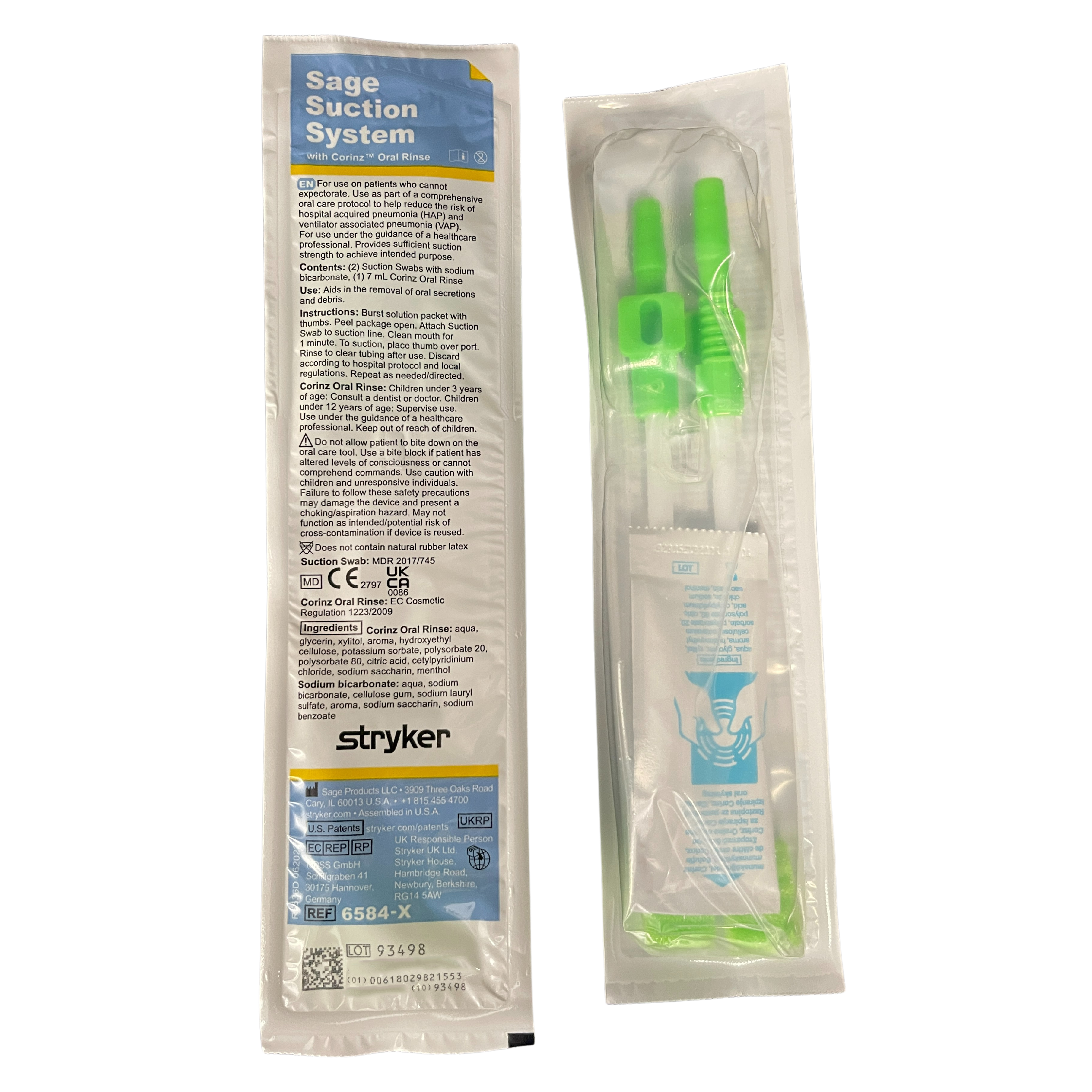 The Sage Suction System with Corinz Oral Rinse is a revolutionary product designed for individuals at risk of aspiration pneumonia. This single-use suction system comes with two suction swabs, providing a convenient and effective solution for oral care.