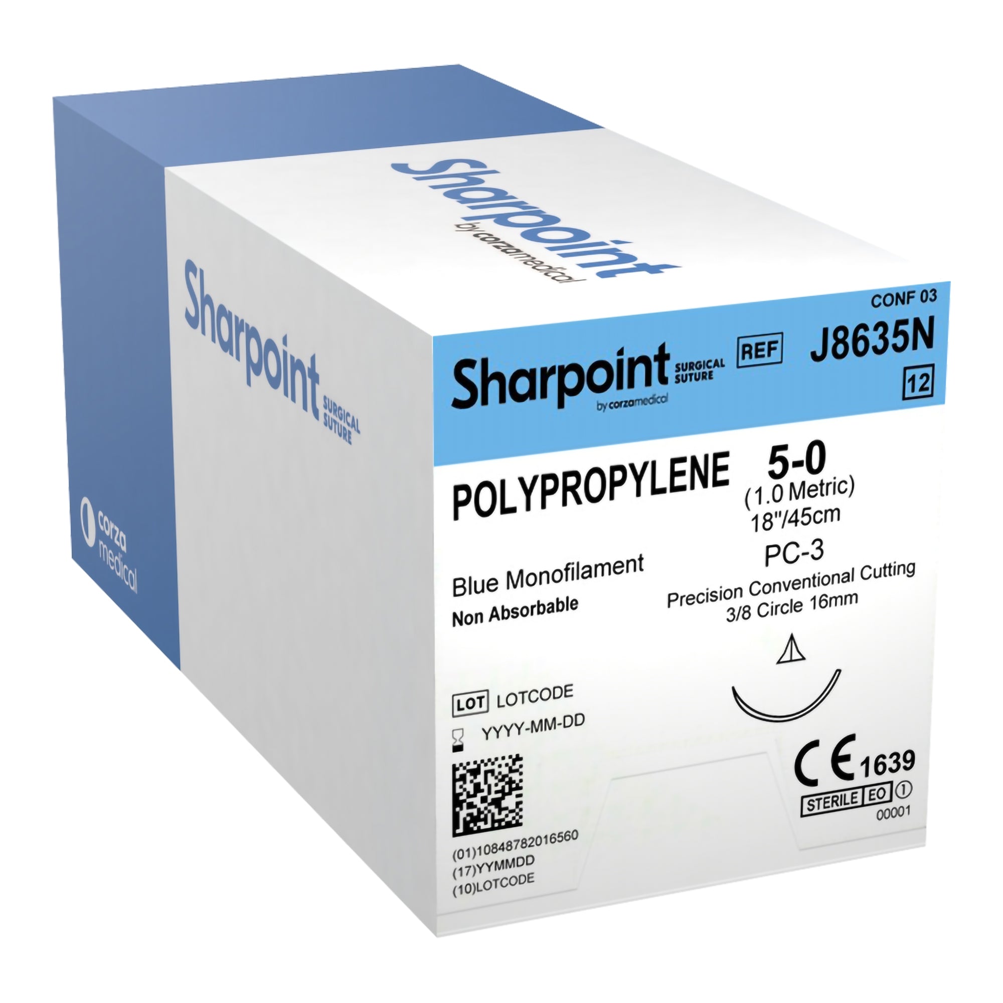 Sutures Polypropylene Sharpoint Blue, Box of 12 - All SizesSUT_CRIJ8685N_12