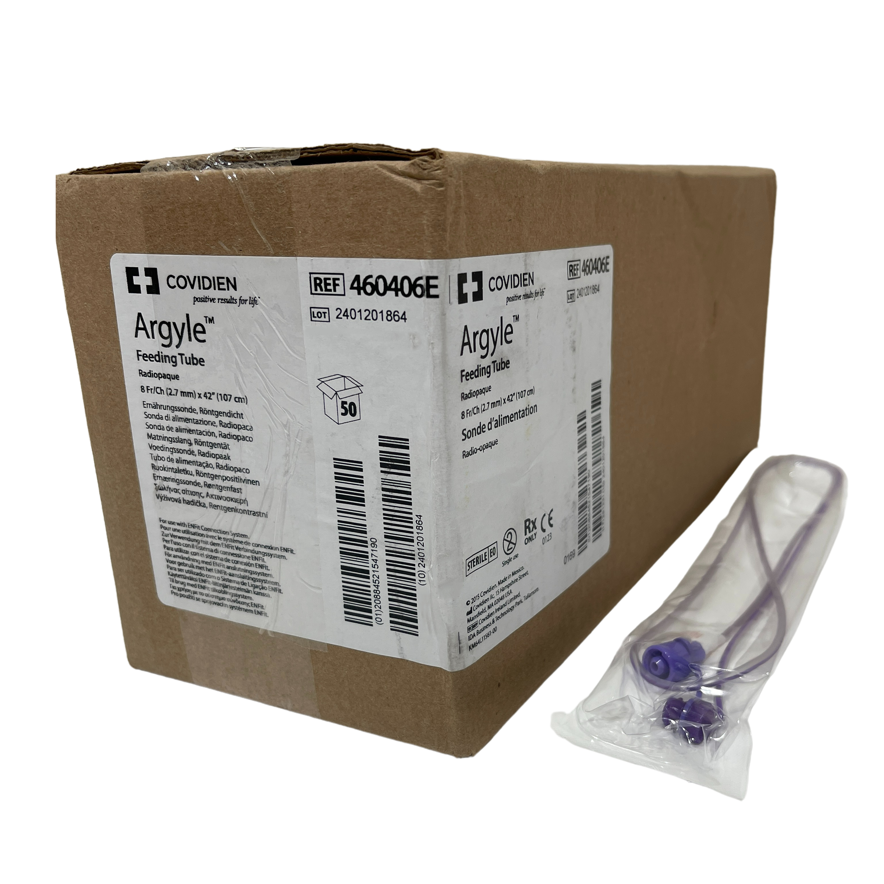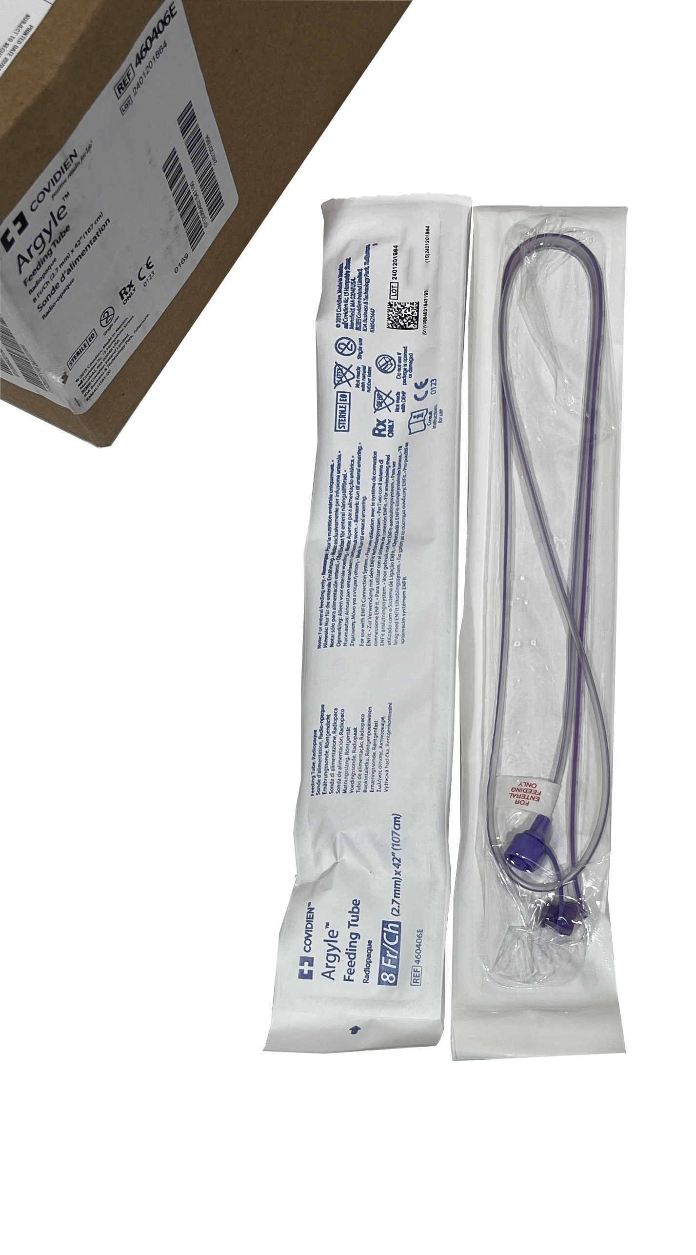 | 460406E | Argyle™ PVC Feeding Tube, Radiopaque | 8 Fr (2.7 mm) | 42 in. (107 cm) |