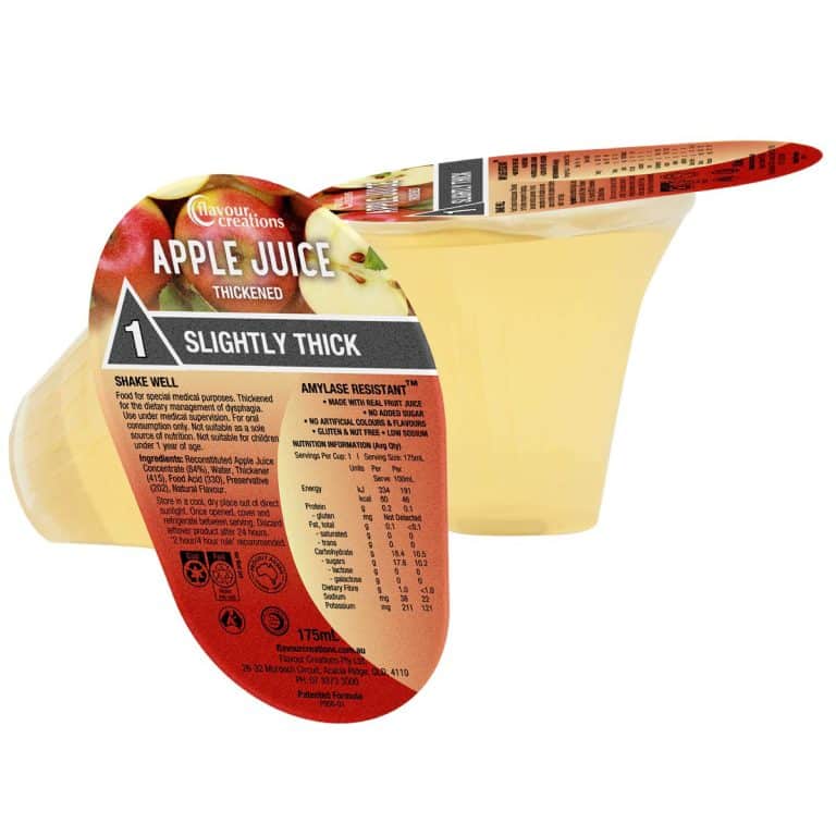 Made from real fruit juice, Flavour Creations great tasting pre-thickened ready-to-drink Apple Juice helps people with dysphagia manage their fluid and energy intake.