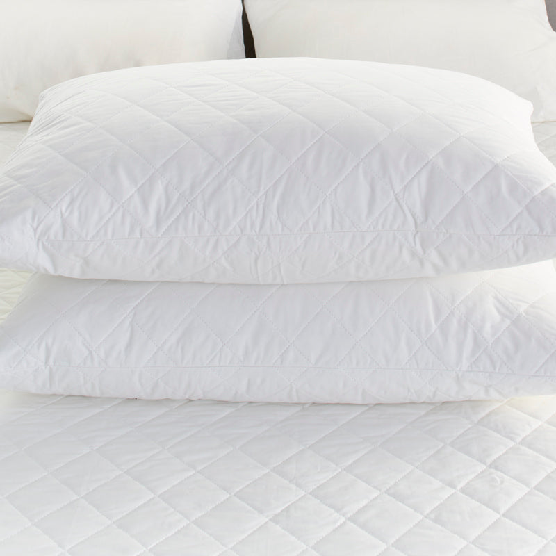 The Cotton Quilted pillow protector is made with a natural cotton filling for superior comfort and has a moderate absorbency.