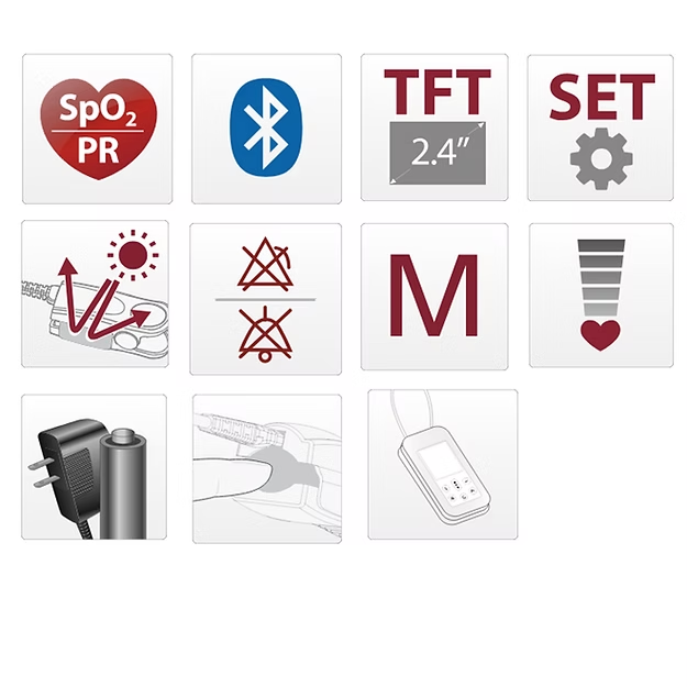 Alert Function - Device delivers audible warning when measurement result exceeds the SpO2/Pulse rate thresholds previously set.