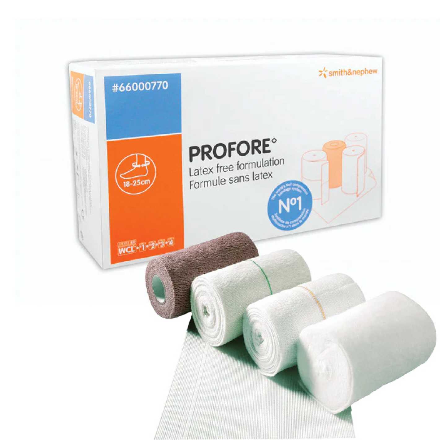 Profore is a convenient presentation of the clinically effective 4 layer bandaging system for venous leg ulcer management. It reinforces a safe and consistent protocol to heal up to 79% of venous leg ulcers in 12 weeks.