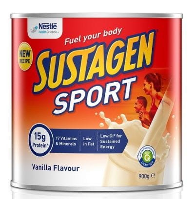 Designed to assist with preparation and recovery from sporting activities, SUSTAGEN® Sport Vanilla is a delicious low fat, nutritious supplement suitable for all types of athletes to drink before or after training sessions. SUSTAGEN® Sport provides protein necessary for tissue building and repair, and carbohydrate as an energy source for exercising muscles when consumed as part of a healthy diet containing a variety of foods.