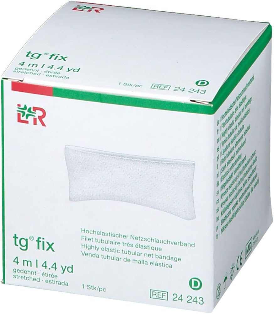 The tg fix bandage is a large-mesh, highly elastic tubular net bandage. It can be used for the easy and time-saving retention of any type of wound dressing, as well as for applying occlusive films. Because it is so flexible it fits all body contours with no bunching, making it comfortable to wear. This net bandage can applied quickly in every situation.