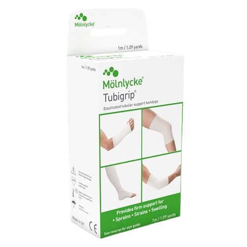 Tubigrip provides tissue support in the treatment of strains and sprains, soft tissue injuries, general oedema, post-burn scarring and ribcage injuries and is also used for wound pressure dressings and arm fixation.