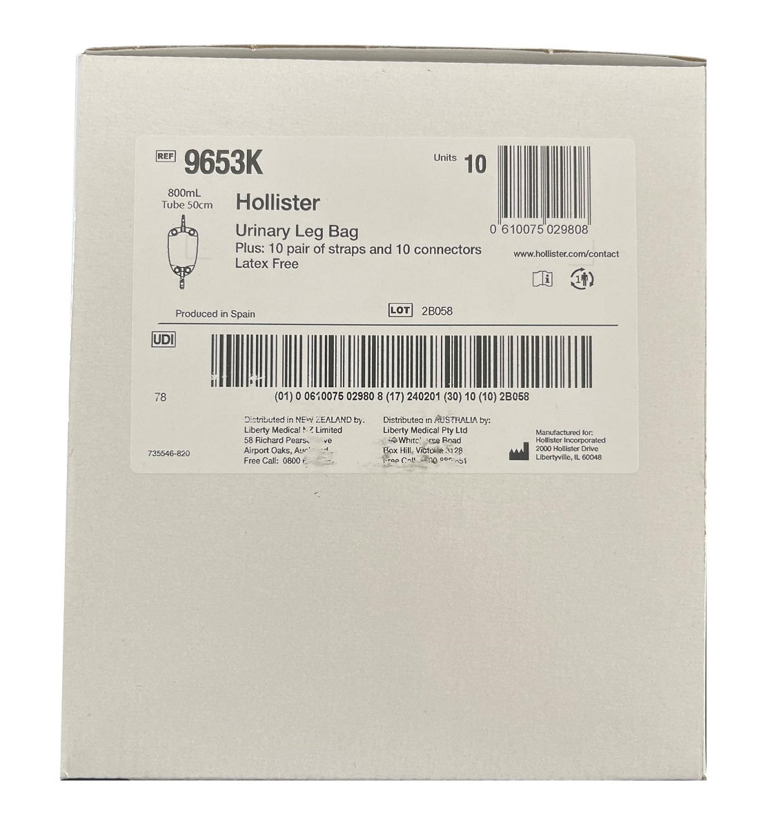 Hollister Leg Bag 50cm Tube, Non-Sterile - All VolumeHOL_9652K_1