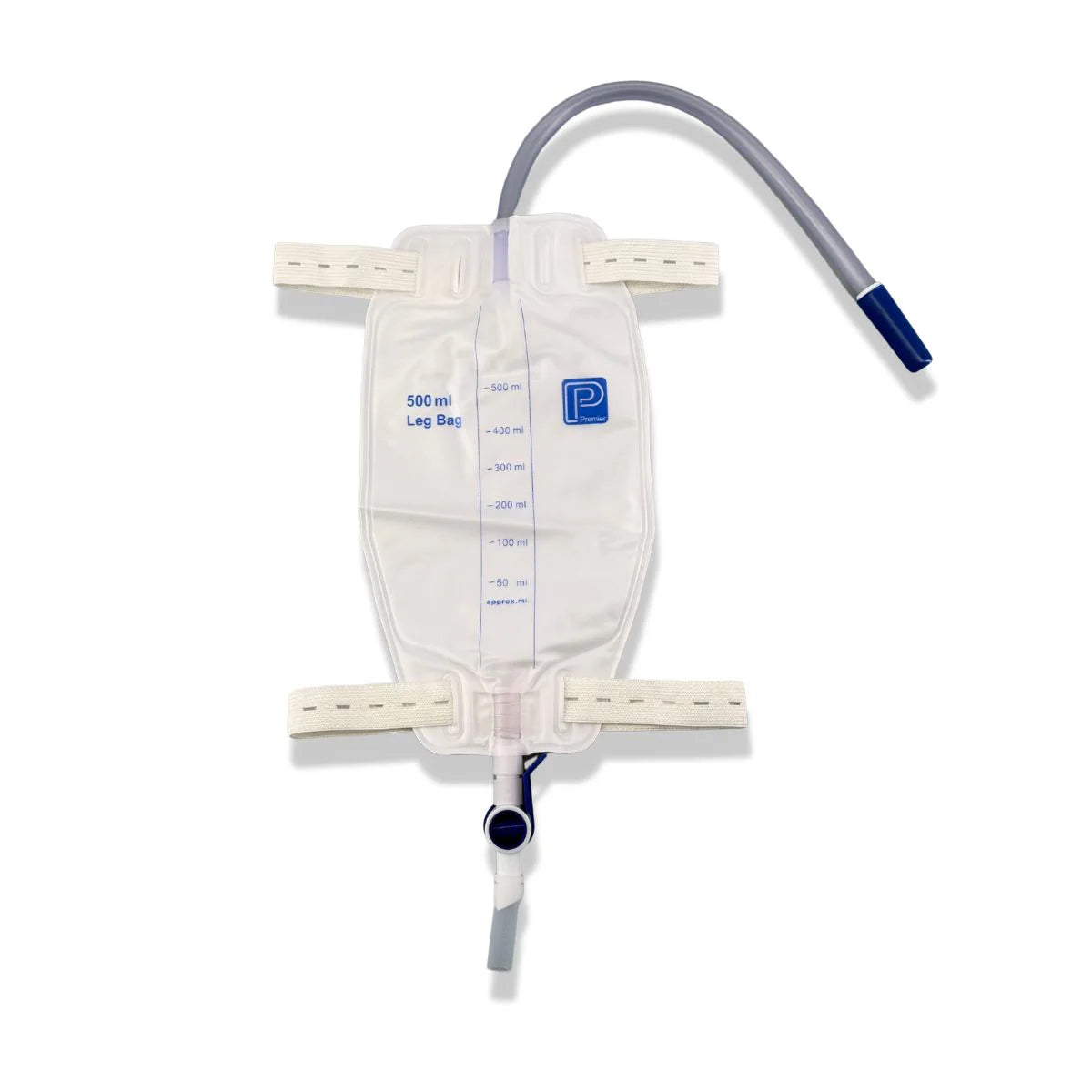Premier sterile leg bag 500ml can be worn above or below the knee and easily secured with a Velcro strip. This model is sterile with a anti-reflux valve and a flip valve outlet offering the ultimate comfort and safety. Comes with a 30cm inlet tube.