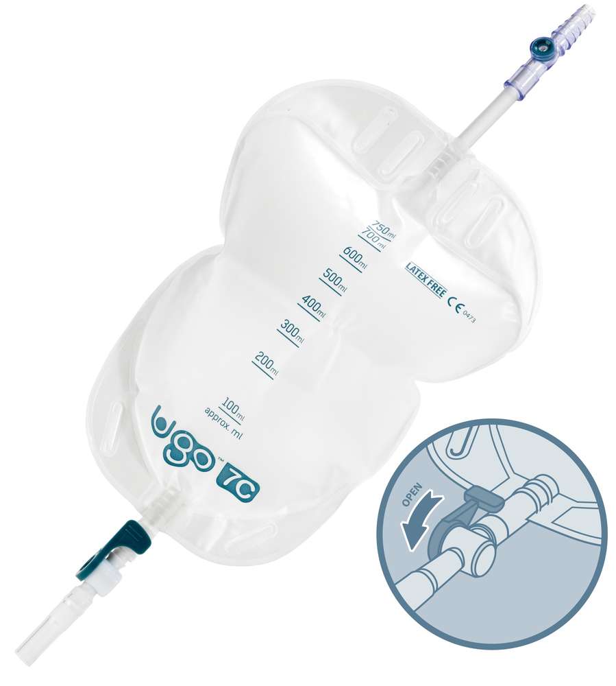 • Choose your leg bag volume: Different people benefit from different volumes in the Ugo Leg Bag range; you may choose between 350ml, 500ml or 750ml.